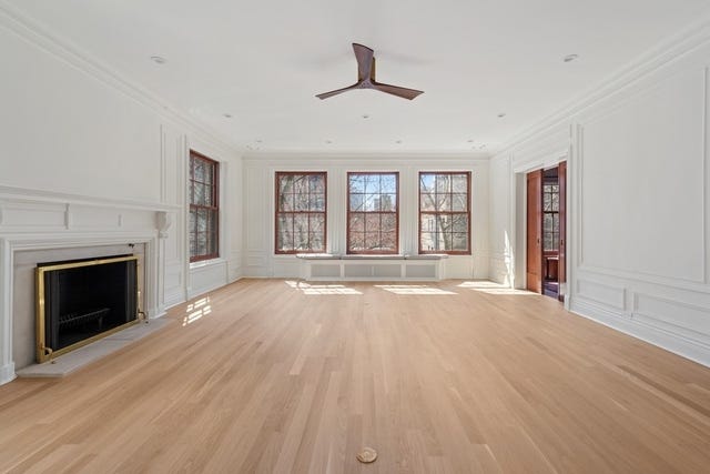 Indeed, the apartment is everything you’d expect from some impossible Nora Ephronian-Tri-Star-Pictures-Three-and-a-Half-Star-Shag-Bob urban lifestyle porn. A rambling 1800 square foot layout, high ceilings adorned with 6 inches of crown molding, a 7 by 15 foot entry gallery that would be an unthinkable waste of precious living space in modern construction. It’s the type of apartment where, in the provided floorplan, the bedrooms are still notated as chambers.